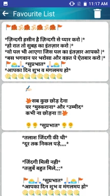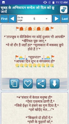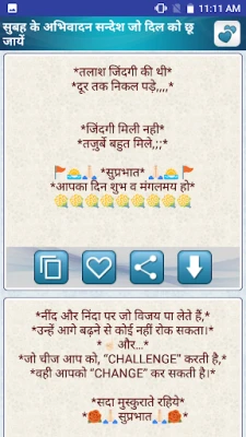 इस ऐप में शुभकामना संदेश और प्रेरणादायक सकारात्मक विचार मौजूद हैं। अपने दोस्तों और परिवार के साथ सुप्रभात संदेश साझा करके दिन की शुरुआत सकारात्मकता से करें। ये संदेश आपकी ऊर्जा को बढ़ाते हैं और आपको मुश्किल परिस्थितियों का सामना करने में सहायता करते हैं।