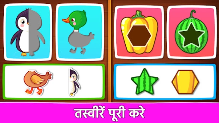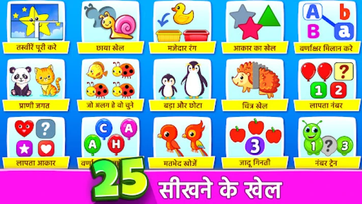बच्चों के लिए मजेदार शैक्षिक खेलों के साथ रंग, आकार, समन्वय और मोटर कौशल सीखें। यह संग्रह छोटे बच्चों की स्मृति और महत्वपूर्ण क्षमताओं को विकसित करता है, जिससे सीखना आसान और आनंददायक हो जाता है।
