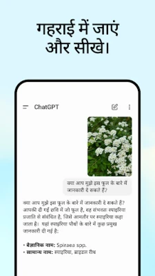 चलते-फिरते संवाद के लिए, ChatGPT का वॉयस मोड आपको हेडफ़ोन आइकन पर एक टैप से अपने विचारों को बोलकर व्यक्त करने की सुविधा देता है। कहानियाँ सुनाएँ, डिनर टेबल पर दिलचस्प चर्चाओं में शामिल हों, या अपने बच्चे के लिए सोने से पहले की कहानी बनाएँ। इसके अतिरिक्त, इसकी विज़ुअल क्षमताएँ आपको तस्वीरों के माध्यम से दुनिया का पता लगाने देती हैं। हाथ से लिखी रेसिपी को तुरंत डिजिटाइज़ करें या किसी ऐतिहासिक स्मारक की तस्वीर अपलोड करके उसके बारे में गहन जानकारी प्राप्त करें, जिससे सीखने और अन्वेषण का अनुभव और भी समृद्ध हो जाए।