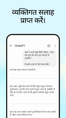 ChatGPT की बुद्धिमत्ता आपकी व्यक्तिगत और पेशेवर आवश्यकताओं को पूरा करने के लिए डिज़ाइन की गई है। रचनात्मक प्रेरणा की तलाश में हों? यह जन्मदिन के उपहार के लिए अद्वितीय विचार या हार्दिक ग्रीटिंग कार्ड तैयार करने में मदद करता है। किसी मुश्किल परिस्थिति से निपटने के लिए अनुकूलित सलाह या किसी विषय पर व्यक्तिगत जानकारी प्राप्त करें। यह सीखने को भी मजेदार बनाता है, एक डायनासोर-प्रेमी बच्चे को बिजली के बारे में समझाता है या किसी भी ऐतिहासिक घटना को समझने में सहायता करता है। पेशेवर विचार-मंथन से लेकर मार्केटिंग सामग्री और व्यवसाय योजना के ड्राफ्ट तक, और सीमित सामग्री के साथ तत्काल रेसिपी सुझावों तक, ChatGPT एक बहुमुखी सहायक है जो हर कार्य को सरल बनाता है।