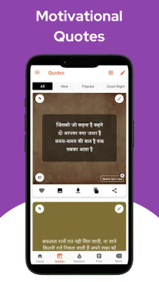 इस ऐप में आपको जीवन के विभिन्न क्षेत्रों से जुड़े महान हस्तियों के अनमोल विचार और अनुभव मिलेंगे। इसमें दैनिक मोटिवेशनल कोट्स, प्रेरणादायक कहानियां और स्टेटस शामिल हैं, जो आपको अपनी चुनौतियों का सामना करने की शक्ति देंगे। चाणक्य के गहरे अनुभव, भगवद् गीता के सार्वभौमिक सत्य, और कई महान लोगों की प्रेरक जीवनियाँ "Quotes Guru App" पर हिंदी में उपलब्ध हैं, अक्सर आकर्षक चित्रों के साथ, जो उनके अर्थ को और भी गहरा बनाते हैं।
