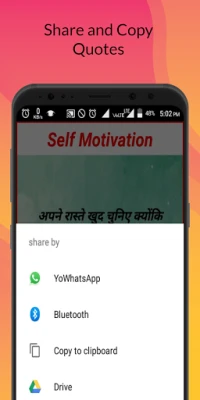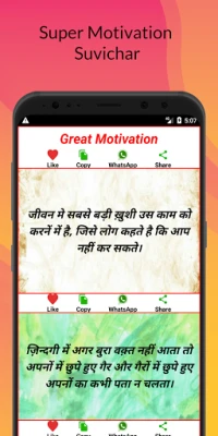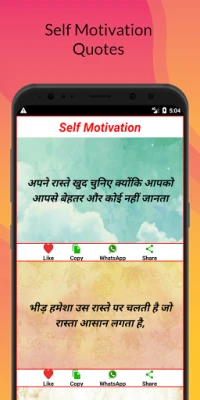 यह ऐप केवल उद्धरणों तक ही सीमित नहीं है; इसमें मोटिवेशनल कहानियाँ, महान लोगों की जीवनियाँ, और संदीप माहेश्वरी व विवेक बिंद्रा जैसे प्रेरणादायी वक्ताओं के विचार भी शामिल हैं। "Motivational Quotes in Hindi - Quotes Adda" एक सहज और उपयोगकर्ता-अनुकूल अनुभव प्रदान करता है, जिससे आप तेजी से प्रेरणादायक सामग्री तक पहुँच सकते हैं। चाहे आपको सुबह की ऊर्जा चाहिए हो या रात को सोने से पहले सकारात्मक विचार, यह ऐप आपकी भावनाओं को सही दिशा देने और आपको हर पल प्रेरित रखने के लिए डिज़ाइन किया गया है। यह आपको आत्मविश्वास और सकारात्मकता से भरने का एक पूर्ण पैकेज है।